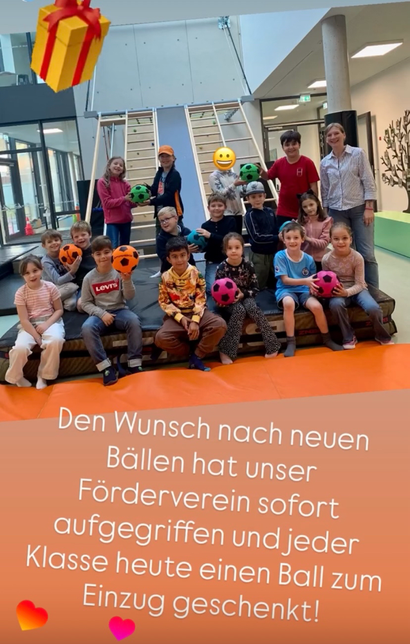 Der Förderverein schenkt den Klassensprechern für ihre Klassen die gewünschten neuen Bälle zum Einzug